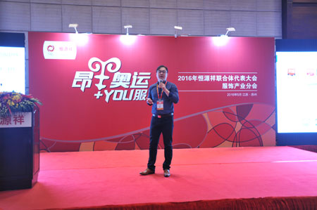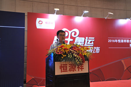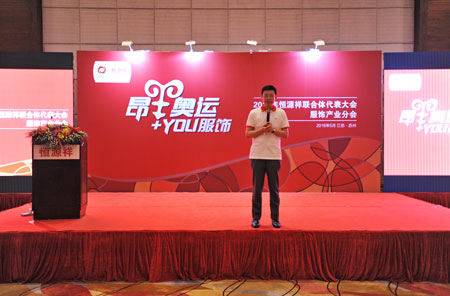 2016年5月31日,以“昂羊奥运、+you服饰”为主题的2016年恒源祥联合体代表大会服饰产业分会在苏州金鸡湖成功举行,恒源祥集团总经理陈忠伟、集团品牌发展中心总监顾云尧、集团财务中心副总监王丹青、集团财务中心副总监俞菲莉、集团品牌发展中心副总监沈岚、集团羊羊印务董事长陆国平、集团财务中心总监助理张司明、恒源祥集团服饰公司总经理黄珏仁、集团公司相关部门代表、上海伯俊软件公司代表、上海灵肯科技公司代表、上海纺织协会产业创新服务中心代表以及来自全国各地的工厂代表、经销商代表共计200余位出席了本次大会。