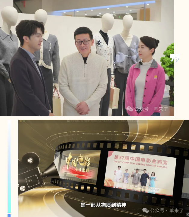 直播开场设置了“纪念中国电影120周年”特别环节。陈忠伟董事长回顾了品牌与中国电影的深厚渊源。他指出,早在上世纪三四十年代,恒源祥的手编毛衣便已受到上海影坛的青睐,品牌的一针一线早已织入中国电影的光影记忆,见证行业发展。现场,陈董还借助老工艺图纸与历史资料复刻的经典毛衣,向老一辈电影艺术家,更向与中国电影同行的岁月致敬。