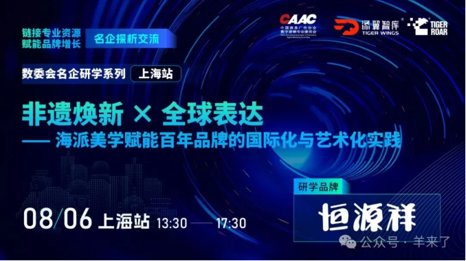 8月6日下午,中国商务广告协会数字营销专业委员会联合虎啸奖组委会、虎啸添翼智库、恒源祥集团共同举办了主题为“非遗焕新×全球表达——海派美学赋能百年品牌的国际化与艺术化实践”的名企研学活动,通过走进恒源祥集团,相互走访学习,交流最前沿的营销数字化方式与商业启发,赋能品牌营销数字化进程,为数委会各方企业提供跨界创新思路。