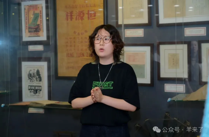活动伊始,恒源祥品牌传播中心罗晓带领大家参观了恒源祥文化艺术展厅,讲解了恒源祥与体育、公益、文化的故事。从 1927 年的绒线商店到 2024 焕新系列产品,从“永不凋零”的颁奖花束到六度携手奥运,从恒源祥典藏编织书到传承的两项非遗技艺——上海绒绣、海派绒线编结技艺的作品展示,百年技艺与当代设计交织,让“行走的非遗博物馆”成为最生动的开场白。