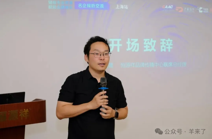 主题分享前,恒源祥集团品牌传播中心联席总经理郭建晨作开场致辞,并讲述了恒源祥百年品牌保持年轻的核心是把海派美学做成全球语言,把非遗故事做成当代叙事。