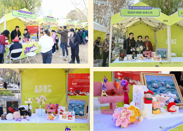 恒源祥集团作为文明单位代表受邀亮相“文化遗产保护传承”版块。由恒源祥传承的两项非遗——国家级非遗“海派绒绣”及上海市级非遗“海派绒线编结”作品在市集展示,现场特设的互动体验吸引了男女老少参与。一只只“暖绒绒”、表情各异的绒线小羊,通过参与者用“绕绒线”的方式徐徐呈现,深受市民朋友的喜爱。与此同时,与“文化遗产保护传承”版块其他单位进行了跨界交流。