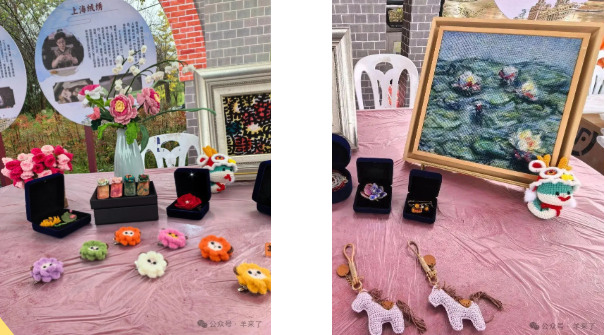 恒源祥传承的两项非遗项目——国家级“上海绒绣”与上海市级“海派绒线编结技艺”应邀亮相本次盛会。会上,展出了复刻经典油画系列的莫奈《睡莲》、恒源祥羊纹等上海绒绣精品,以及近年开发的文创产品;绒线编结技艺的展示,以绒线花盆景、生肖主题文创与胸花等系列为主,充分展示了绒线艺术的多元魅力。
