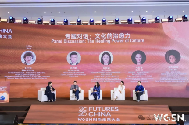 大会首先由WGSN首席执行官Carla Buzasi带来转向未来·2026趋势发布。由WGSN消费者洞察中国首席编辑蔡君珊、WGSN中国趋势总监姚清曌、门淑萍分别就“2026未来消费者”“2026色彩趋势”和“2026面料趋势”进行了发布。2026趋势中提炼出道德受损、理性乐观、怀念、情绪微光四种消费者情绪,并根据提炼的这四种情绪得出2026四种消费者画像为求真派、自治派、微光派、协同派。2026全球五大关键色为晚山新黛、油蜡纸、能量纸、光芒绿、粉末可可。随后,围绕2026WGSN趋势研究及品牌转向力议题,与会嘉宾进行了专题对话,各位行业大咖纷纷分享了自己的观点。
