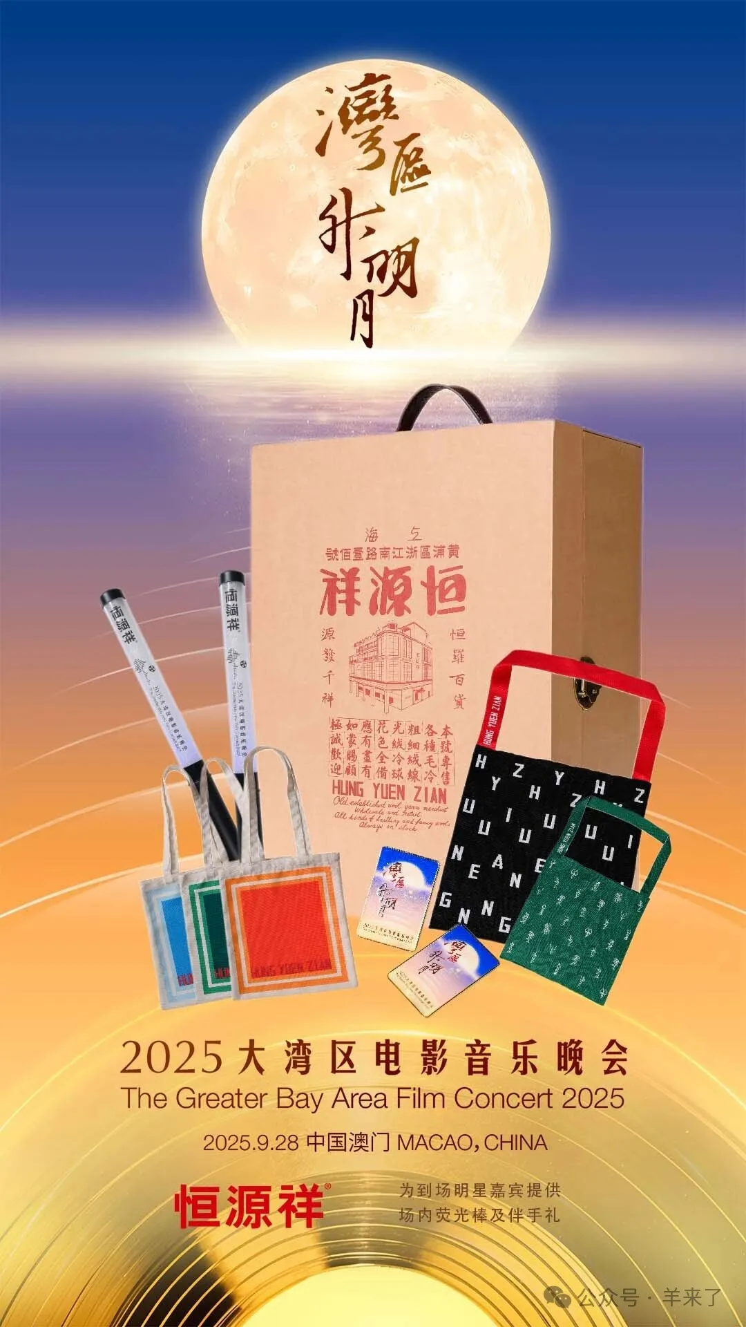 长久以来,恒源祥与中国电影同频共振,以同行者的身份推动影视文化发展。作为2025星辰大海青年演员优选计划独家战略合作伙伴,恒源祥持续关注青年演员成长,用热忱与担当为中国电影产业发展昂扬助力。从去年大湾区电影音乐会现场的发光手环,到今年的荧光棒、纪念徽章等,恒源祥的专属于心意点亮湾区之夜,将对中国电影的热爱转化为实际行动,在光影与歌声中,共同见证中国电影的蓬勃未来。
