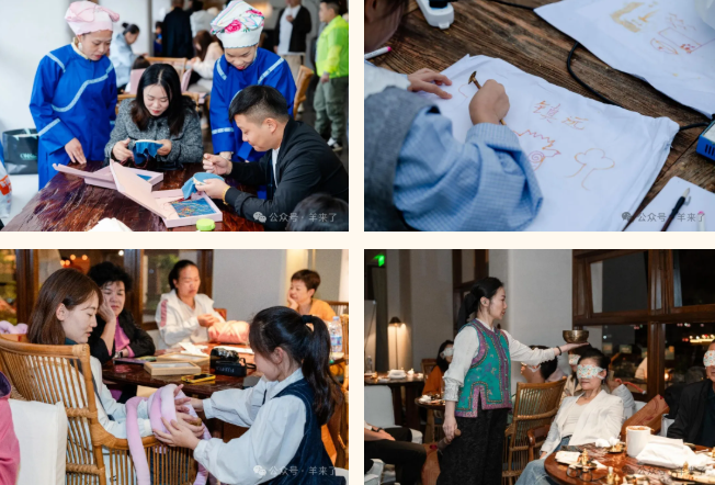 活动现场,非遗体验成为一大吸睛的环节。恒源祥联合贵州省妇联的非遗从业人员,将苗绣、蜡染等当地特色手工技艺搬进“睡前一小时”场景。在古城民宿的温馨空间里,参与家庭放下电子设备,有人专注勾勒苗绣纹样,让传统图腾在指尖绽放;有人耐心浸染蜡染布料,看着蓝白交织晕染出独特肌理;有人和孩子共同协作,用冰岛线编织着抱枕。这些需要高度专注的手工活动,不仅能驱散白日杂念、舒缓神经,契合恒源祥“自然助眠”的理念,更让参与者在一针一线中感受非遗的魅力,为睡前时光赋予文化温度。