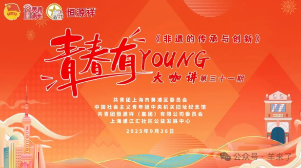 9月26日下午,由共青团上海市黄浦区委员会、中国社会主义青年团中央机关旧址纪念馆、共青团恒源祥(集团)有限公司委员会及上海浦江汇社区公益发展中心联合主办的“青春有Young”大咖讲恒源祥专场活动在恒源祥大厦成功举行。本次活动以“非遗的传承与创新”为主题,通过专题分享、手作体验和文化参观等形式,为青年提供了一次深入学习和体验非遗文化的机会。