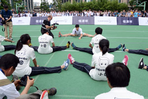 2014年6月9日 集团邀请刘翔等明星为格致中学的学生开展体育指导课。