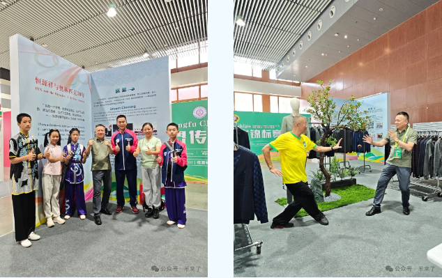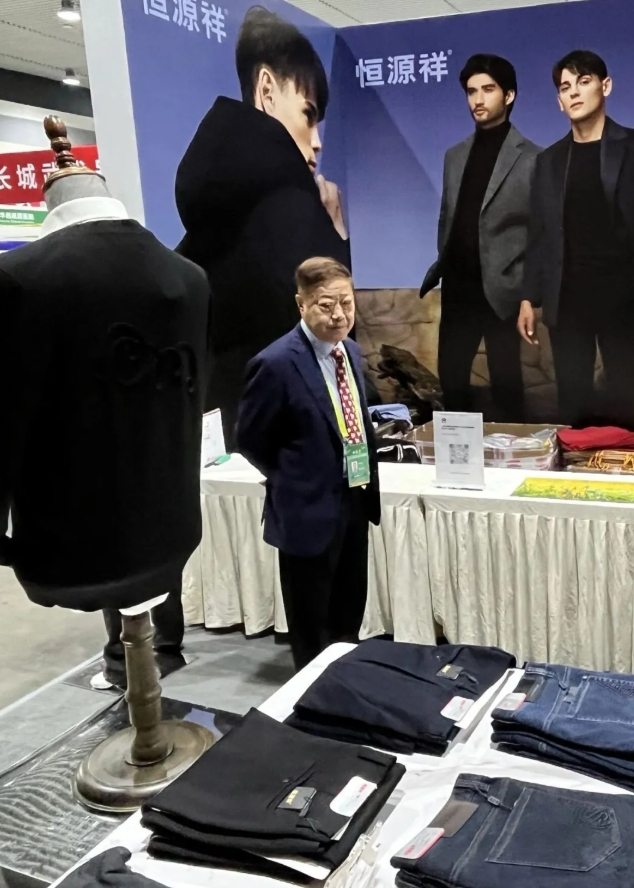 赛场外的体育与文化商品展会也成为恒源祥的宣传窗口,涵盖了恒源祥与武术、奥运、绒绣、公益等板块,助力提升品牌形象。上图为国际武联名誉副主席刘瑞旗董事长视察恒源祥展区。