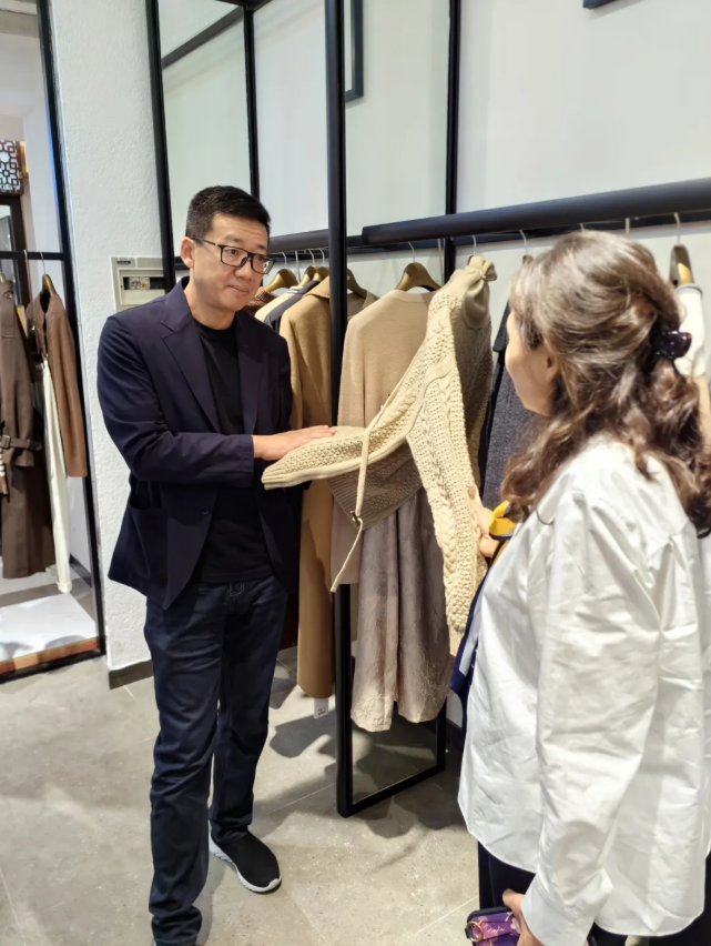 走访成都女装店铺时,陈董详细了解了店铺经营近况和下一步发展计划,认真查看了店铺货品陈列和热销女装产品。