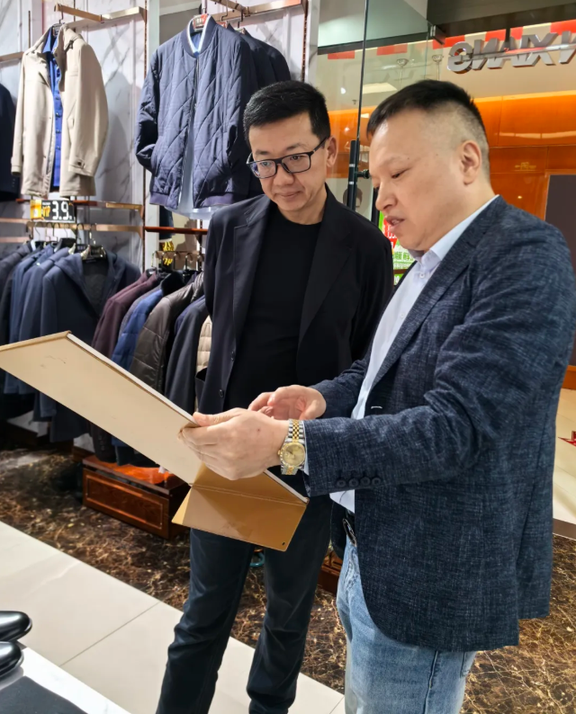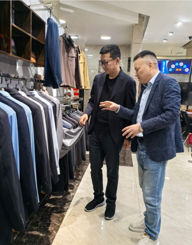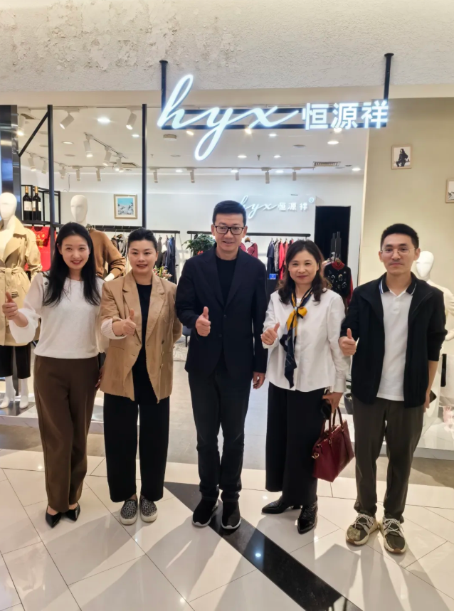 随后,陈董一行又赶往成都恒源祥男装终端走访调研。陈董指出实体店铺是消费者体验的重要入口,要运用好更多体现恒源祥品牌文化的场景布置和产品陈列。