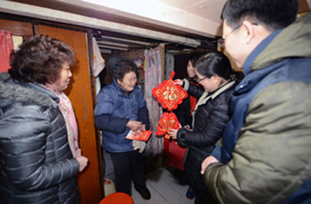 1月27日,恒源祥集团总经理、黄浦区人民代表陈忠伟,集团党委副书记、黄浦区党代表顾红蕾、集团团委书记王晓懿冒雨前往宝兴社区,看望社区纳保老人和困难居民。 他们走街串巷,来到与恒源祥党员三结对帮困的居民家中,给困难居民送上慰问金和新年礼物,老人们十分感谢恒源祥集团长期以来对他们的关怀。集团领导们也代表恒源祥集团全体党员和员工祝福老人们在新年身体健康、生活美满、家庭幸福。(通讯员■王晓懿)
